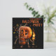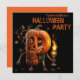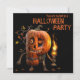 A halloween funny pumpkin jack-o'-lantern in the shape of the letter "P" holding a lamp with a flame.