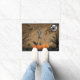 Skeleton dancing in a pumpkin garden. Webbed moon with bats, spider and a raven sitting atop a pumpkin.