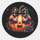 This sticker is shown with a cute festive Halloween glam pumpkin art print.