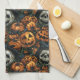Halloween Pumpkin pattern kitchen towel in dark orange colour.