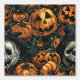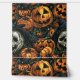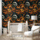 illustration of a Pattern Halloween Pumpkin with skeleton wallpaper in dark colour . Embrace the essence of modern elegance as this sophisticated design adorns a touch of seasonal charm and timeless style. Perfect for adding a dash of sophistication to your holiday celebrations.