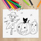 Halloween Pumpkins and Scarecrow Colouring Page Rubber Stamp