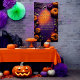 If you are looking for an atypical elegant Halloween illustration, this one is for you. Orange pumpkins on purple background in an explosion of colours ready to be customised.