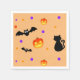 Halloween pumpkins, bats and black cat on white paper Napkins.