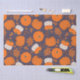 Orange and white Halloween pumpkins pattern with a purple background.