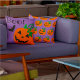 Halloween Purple Background Orange Jack O Lantern Cushion
