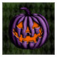 Halloween purple and orange spooky pumpkin Jack Olantern on green grunge argyle background