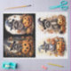 Elevate your crafting with this enchanting racoon collage decoupage paper for Halloween featuring a whimsical racoon amidst charming pumpkins. It adds a touch of magic to your creations. Enjoy 4 different scenes on one paper. Unleash your imagination and transform projects into captivating artistry today!