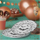 This is a random Halloween iconic bats pattern with a white foggy background. It is trimmed with a black ring around the rim.