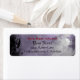 A custom New Address return address label template with gothic Old English letters for your name and blocky letters for your custom address against a spooky Halloween sky with gothic ravens and moonlit clouds with a purple mist. Customise It to change fonts, label size and more, even save your design for later.