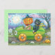HALLOWEEN ROAD TRIP, JACK AND BLACK CAT FRIENDS HOLIDAY POSTCARD