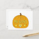 A simple illustration of a pumpkin carved with three hearts and 'Mr and Mrs'. The image is set against a white background. A romantic card to celebrate a Halloween wedding or anniversary.