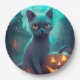 Halloween Russian Blue Cat With Pumpkins Scary Paper Plate