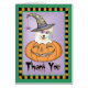 Send thanks for having a howling good Howl-oween party celebrating Halloween with a cute Samoyed puppy witch in a smiling Jack-o-Lantern.