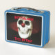 This is a standard metal lunchbox that appears to work just fine. We designed this box ourselves with an uploaded photo and custom text on the front and back. It looks absolutely beautiful except the front of the lunchbox is not centered like it shows in the photo. The print borders don't align with the inset flat part of the box where the preview photo online showed it perfectly centered in there. The back looks nice and centered though.