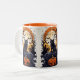 halloween scene with black cat with nocturnal moon Two-Tone coffee mug