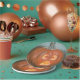 Artwork in soft pastel hues portraying a carved pumpkin with a scary yet cute Jack o’ lantern face decorates these paper plates perfect for a Halloween party.
