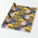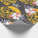 Halloween seamless pattern with colourful and scary skulls. october background. Textile texture with skulls,flowers and leafs