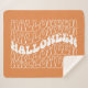 This eye-catching Halloween design features a bold and playful repetition of the word "HALLOWEEN" in a wavy, retro-inspired font. The text is arranged in multiple layers, creating a visually dynamic pattern that draws the viewer in. The central word is highlighted in a solid, vibrant orange, making it stand out from the surrounding text, which is outlined in the same colour. The wavy typography adds a sense of movement and energy, perfectly capturing the spooky and fun spirit of Halloween.