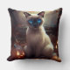 Halloween Siamese Cat With Pumpkins Scary Cushion