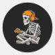 Halloween Skeleton Gamer Video Gaming Funny Skelet Classic Round Sticker