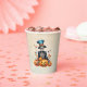 Halloween Skeleton Paper cup. Colourful Halloween paper cup with grinning paper cup. Skeleton is wearing a top hat and sitting on pumpkins.