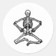 Round sticker shown with a spooky halloween skeleton print. Customise this item or buy as is.