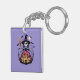 This Halloween Skeleton Witch Square Keychain showcases a charming skeleton witch with a broom and pumpkin dress under the moonlight, surrounded by bats on a purple background. A perfect Halloween accessory to add a touch of spooky cuteness to your keys or bag.