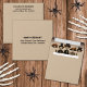 Get ready to spook up the season with our captivating Halloween pre-addressed envelope with built in liner. This unique masterpiece showcases an eerie yet enchanting family of skeletons dressed in dapper top hats and suits and elegant flowered hats in a field of orange flowers as the envelope liner. With a perfect blend of spooky and stylish, this envelope is bound to enchant anyone. Whether you’re looking to send a chillingly charming greeting or add a touch of macabre elegance to your Halloween, this envelope is the ideal choice. Capture the essence of the season and send a bone-chillingly beautiful message to friends and family. Edit text from the product page. You may delete all text to leave envelope blank for handwritten addressing. Or save time and enter each recipient’s name and add to your cart and change each address as you need. The return address can also be customised or left blank as you wish. To change font style or colour, use the design tool. These coordinate well with our Halloween cards from the same collection if you prefer a coloured envelope rather than the standard white. Check out our Creepy Halloween Skeletons Collection for more products in this line.