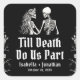 This Till Death Do Us Part Square Wedding Sticker features a vintage skeleton couple and elegant gothic typography — perfect for Halloween weddings, gothic ceremonies, or alternative fall celebrations.