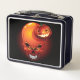 Scary and Creepy Halloween Skull and Jack O'Lantern Pumpkin on Black Background. Design Copyright BluedarkArt.