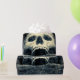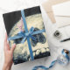 White grinning skull against the black or dark background. The text Black Spot above the skull. One of a kind customisable wrapping paper. You can change the image and you can change or delete the template text. Pirates were presented with a Black Spot to officially pronounce some verdict. Have fun and Happy Halloween.