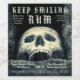 White grinning skull against the black or dark background. The text Keep Smiling Rum above the skull. The text Made of the purest tears of captive beauties to the left of the word RUM, the text Strikes to the marrow to the right of the word Rum. The text Dead Man's Chest Distillery in the bottom left corner of the label. The text The Strongest Beverage Ever in the bottom right corner. The date 2013 between this texts. PIRATE GENERAL'S WARNING: This drink overuse results in high spirits goes along in the bottom edge of the label. Fully customisable funny one-of-a-kind wine or liqueur label to decorate a Halloween or other event party. You can change or delete all the texts. You can change the image. Feel free to use the button Customise to fine-tune the design to your needs and wishes. Happy Halloween. And yes, do not drink too much alcohol, but always have high spirits.