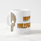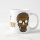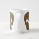 This orange and black mandala, with layers of skulls, lightning bolts, flying bats, spider web, spikes, and sharp geometric designs, has been masked under a skull for a fun and creepy Halloween image. This mug is available in jumbo, espresso, and bone china sizes and styles.