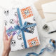 The "Halloween Skulls Seamless Wrapping Paper Design" features a seamless pattern of spooky skulls, perfect for adding a chilling touch to your Halloween gift wrapping.