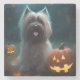 Halloween Skye Terrier With Pumpkins Scary Stone Coaster
