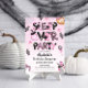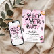This playful Halloween-themed birthday invitation features a candy-pink design packed with cute bats, skulls, doughnuts, spiders, and sweets – perfect for any little ghoul planning a birthday sleepover to remember!