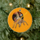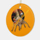 Real tarantula set against a litghtning struck dark moon with a small ghost appearing above the words Happy Halloween