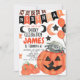 Cutest invitation to celebrate your Halloween birthady. Invite people to your party with this amazing design. Cute cat coming out of the pumpkin with halloween banner, moons and bats is such a great combination for kids birthday!