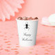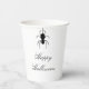 Happy Halloween paper cups, with a cute black and white spider design and black customisable script typography lettering. Great for adding a spooky touch to your next Halloween or costume party.
