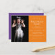Halloween Spider Web Modern Party Invitation Postcard with photo template with purple and orange backgrounds.