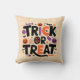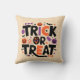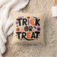 This Halloween design captures the festive and whimsical spirit of the season with a vibrant color palette and playful theme. The words "TRICK OR TREAT" are prominently displayed in the center, with bold black letters topped with orange accents, giving the impression of dancing typography. Surrounding the text is an eclectic collection of iconic Halloween icons, including bright orange smiling pumpkins with black cutouts for eyes and mouth, black bats with outstretched wings, purple and orange candies shaped like candy or coins, a white spider web in the upper right corner with a small spider hanging from it, and several small floating purple ghosts. The overall effect evokes a joyful and childlike atmosphere characteristic of the October 31 celebration.