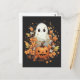 Cute autumn themed Halloween Ghost and Pumpkin postcard to get you in the Halloween Spirit.