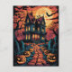 Halloween Spooky Haunted House Pumpkins Postcard