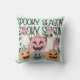 Halloween Spooky Season design is a colourful, fun, retro style design featuring ghosts in sunglasses and witch hats and pumpkin jack-o-lanterns of orange, teal, and pink with text that reads Spooky Season!