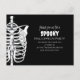 Spooky Skeleton X-Ray design will sure to make your Halloween gathering extra eery. Watch out for ghouls and ghosts. A whimsical drawing of a Halloween skeleton with an X-Ray effect, black and white outlines, and charcoal effects. This design features a Halloween party spooky scary fun with a QR code website online and social media, an rsvp scan scannable URL, a creepy black and white skeleton, a cute whimsical funny cute, a Halloween budget postcard invitation, a whimsical typography script, handwritten script calligraphy, a scary Halloween skeleton spine, a modern sketch drawing cartoon
