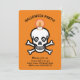 Halloween spooky skulls on orange background party Invitation. All texts and numbers are ready to be personalised.