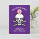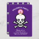 Halloween spooky skulls on royal purple background party Invitation. All texts and numbers are ready to be personalised.