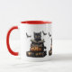 Start your spooky season with this enchanting and whimsical Halloween mug. The design features a clever black cat wearing a witch's hat, perched on a stack of spellbooks and a jack-o'-lantern, while bats fly around. This magical and cosy scene is perfect for enjoying your favourite brew during a fall evening. It's a fantastic addition to your Halloween decor and a perfect gift for cat lovers and anyone who enjoys the fun, mystical side of the season.