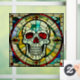 Decorate your windows this Halloween with a colourful window cling featuring a stained glass mosaic skull.